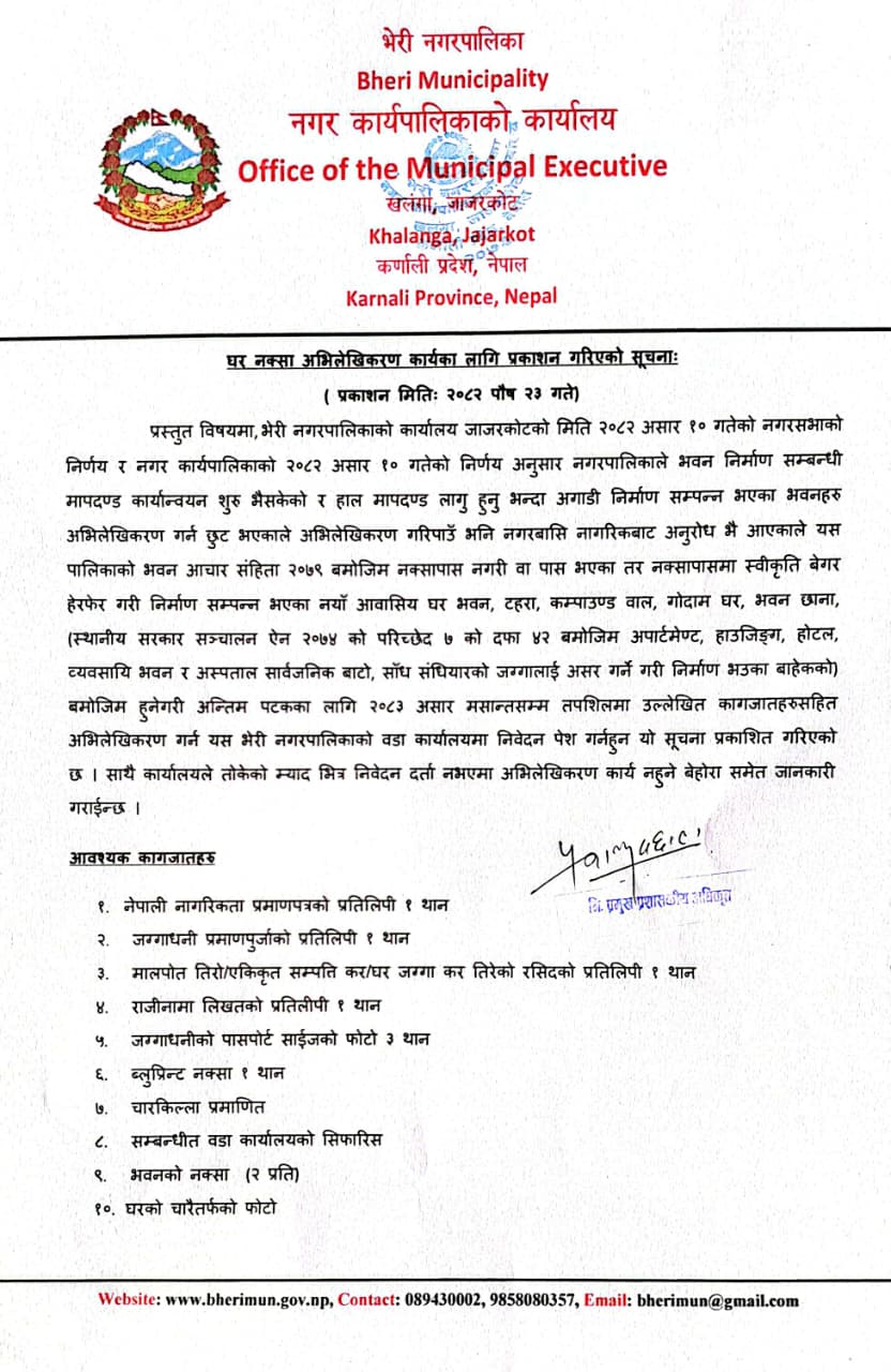 Home » घर नक्सा अभिलेखिकरण कार्यका लागि प्रकाशन गरिएको सूचना ।
