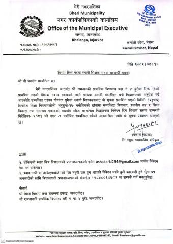 Home » रिक्त पदमा स्थायी शिक्षक सरुवा सम्वन्धी सूचना।