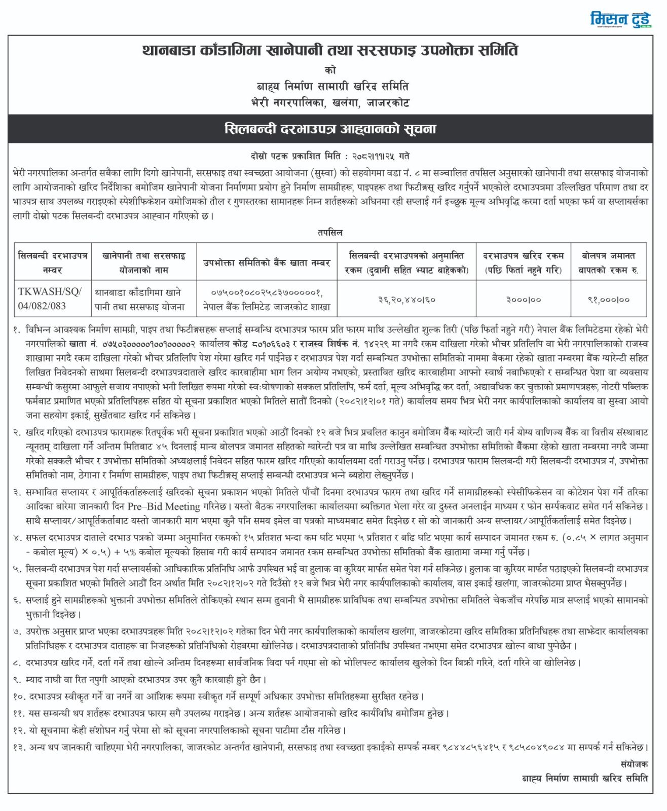 Home » सिलबन्दी दरभाउपत्र स्वीकृत गर्ने आशयको सूचना ।(SUSWA) (082-11-25)