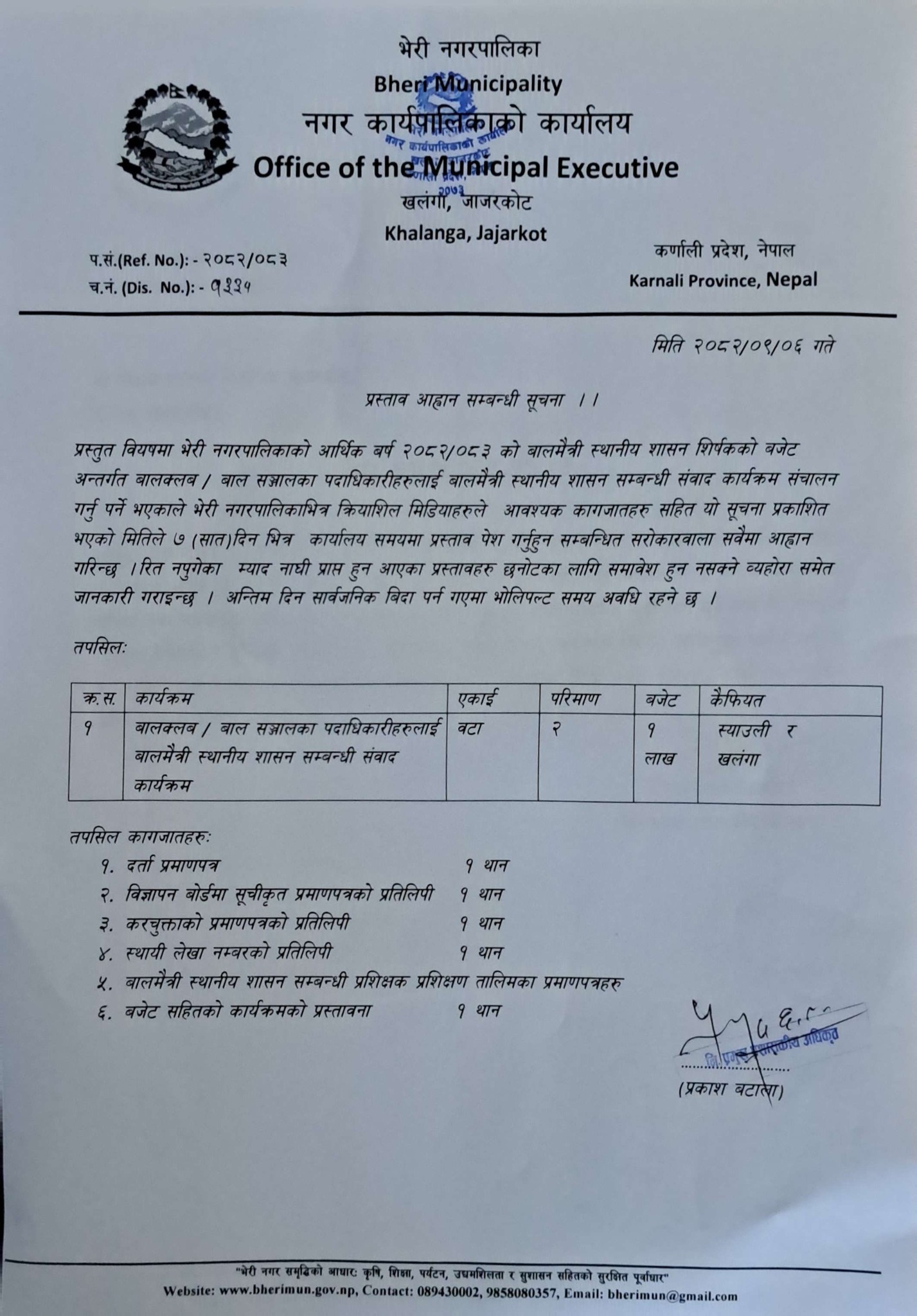 Home » बालक्लब/बाल सञ्जालका पदाधिकारीहरुलाई बालमैत्री स्थानीय शासन सम्बन्धी संवाद कार्यक्रम संचालनकालागि प्रस्तावना पेश गर्ने सम्बन्धिको सुचना।