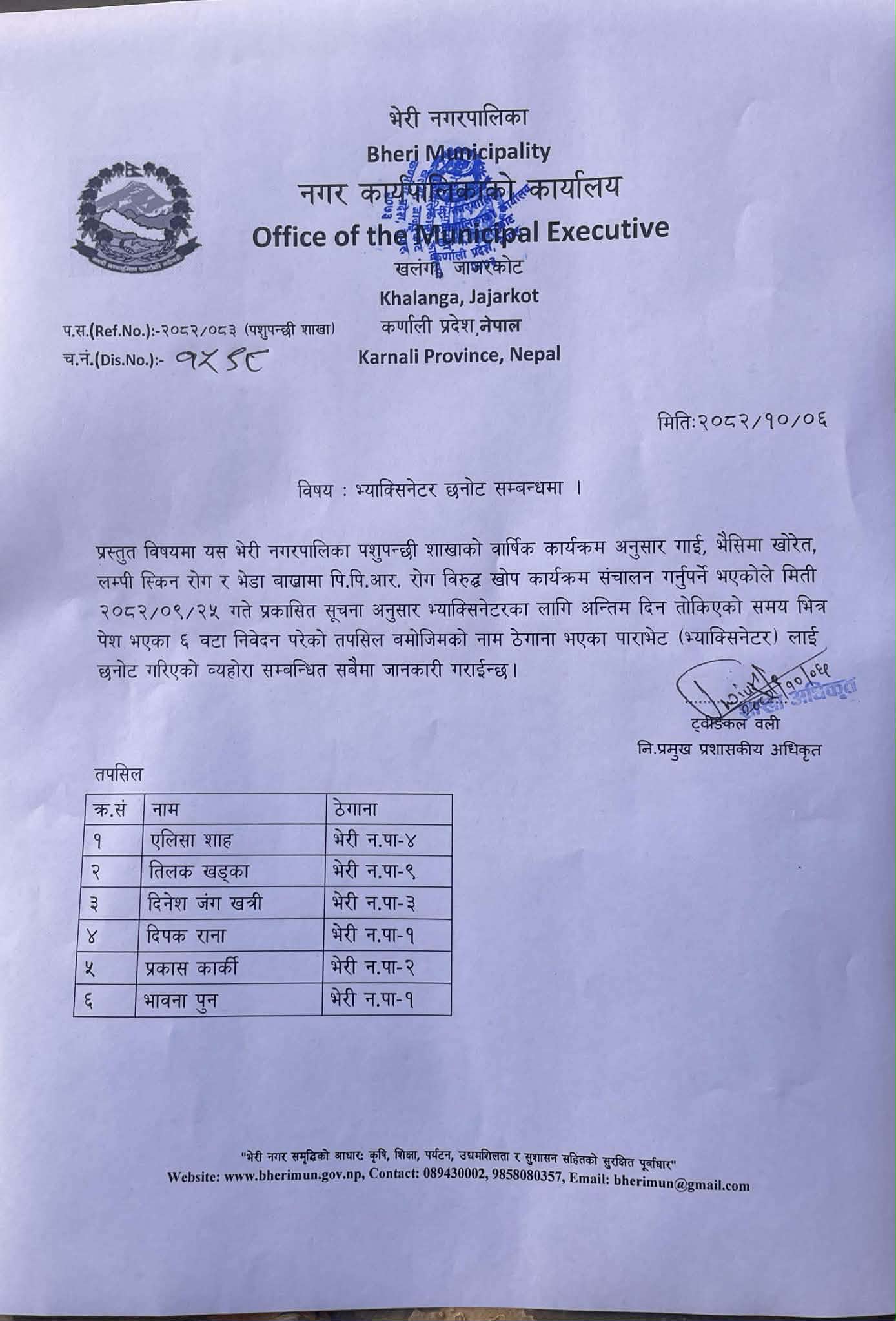 | वडा न. ६ | 9868656540 / 9864782519 |